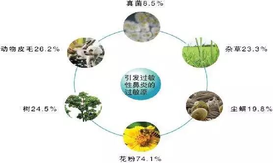(2)花粉风媒花粉由于飘散量巨大且能远距离传输,因而可影响远离花粉源数百公里的人群。虫媒花粉只有直接接触才会致敏,如农艺师和花店店员。花粉的致敏能力随季节、地理位置、温度和植物种类而变化。大多数花粉致敏者会患有结膜炎。