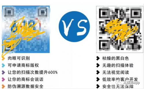 三维码可将不同的图片、logo、文字等以最直观的形式显现在三维码的表面,标码合一,扫码者使用设备识读前,即可通过眼睛进行辨别,分辨其图像、编号、文字等信息。三维码的图形化设计,能够给人们带来一种更直观、更吸引人、更容易识别的印象,可传达视觉、触觉、听觉三位一体的互动诉求,使其产生一种过目不忘的品牌文化体验和赏心悦目的视觉效果,还会增加扫码过程的参与感。