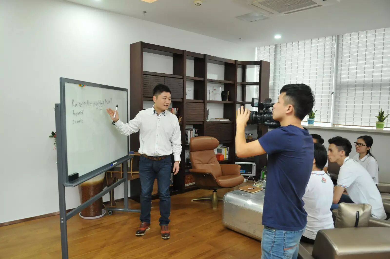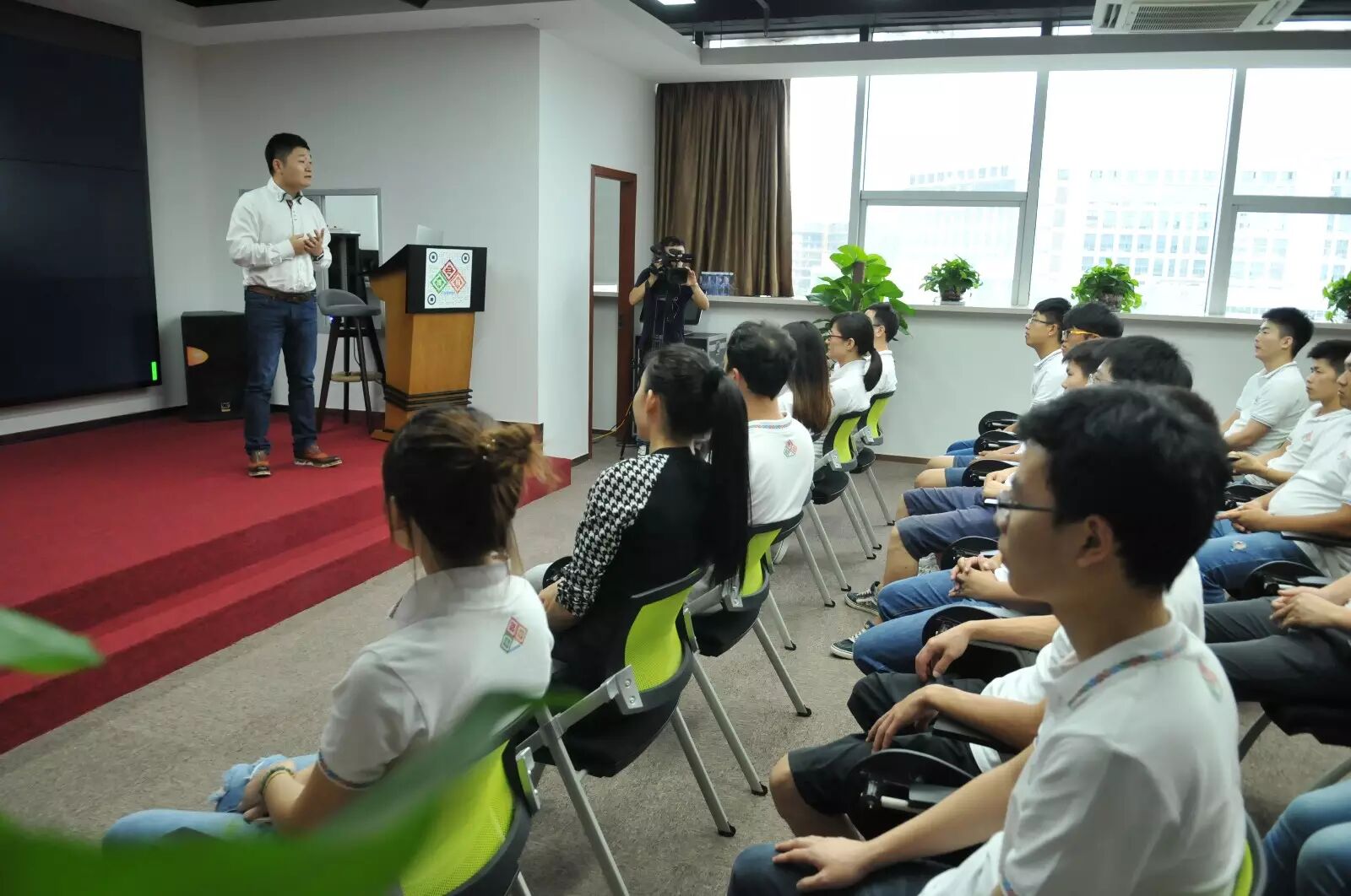 三维码总经理王秋婉女士向记者介绍公司企业文化