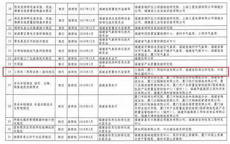 福建省质监局批准发布2017首批44项地方标准,三维码赫然在列