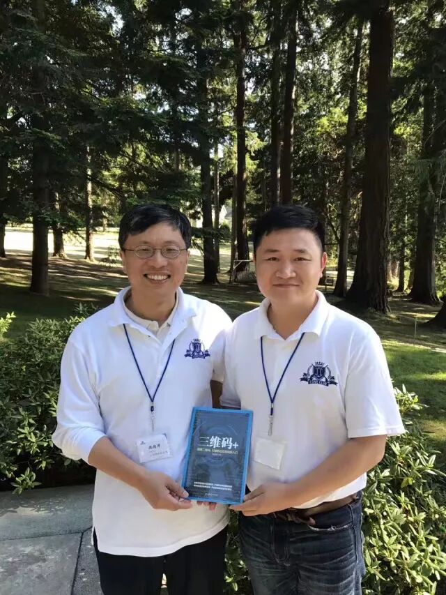 三维码创始人陈绳旭向微软全球执行副总裁沈向洋博士赠送《三维码+》