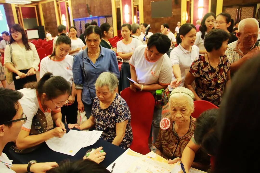 现场老人登记信息领取黄手环