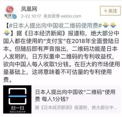 日本人提出向中国收“二维码”使用费,每人1分钱?