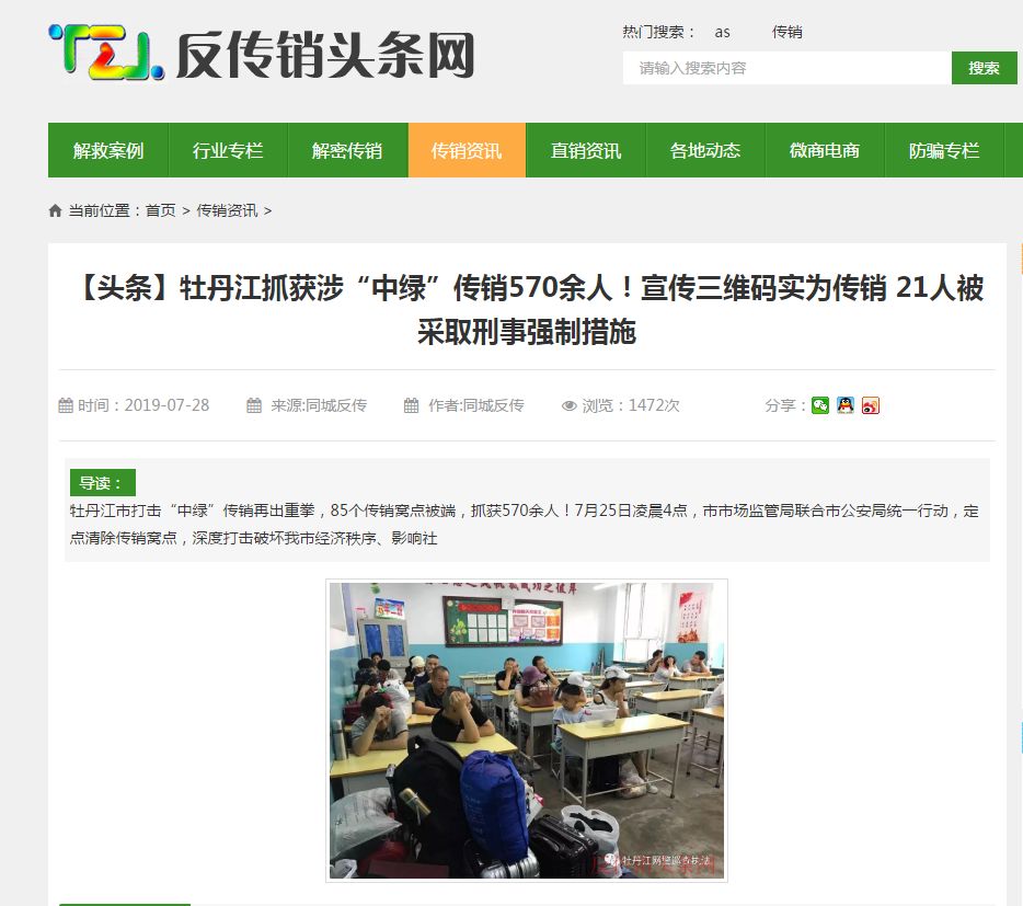 反传联盟 | 【头条】牡丹江抓获涉“中绿”传销570余人!宣传三维码实为传销 21人被采取刑事强制措施