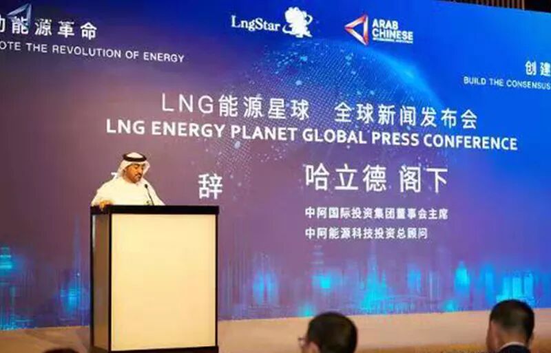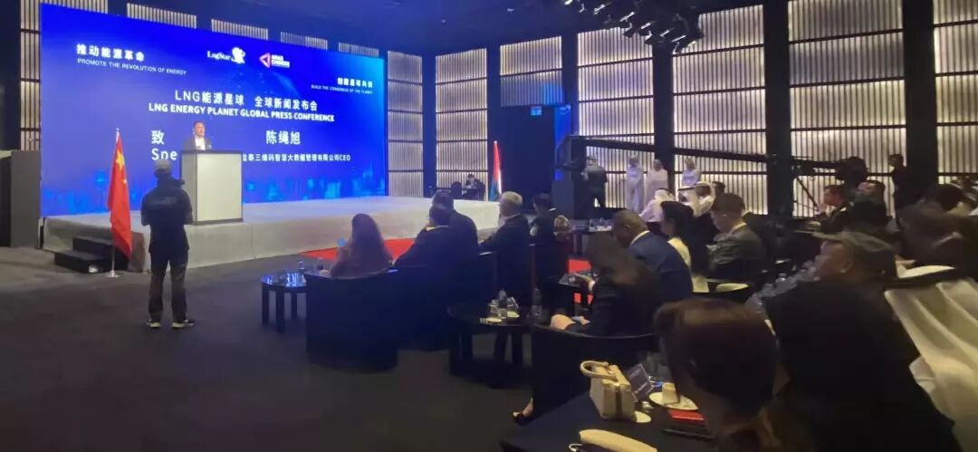 11月12日,由宾·扎耶德集团、阿联酋中阿国际投资集团、中阿能源科技投资有限公司、香港洪门世纪控股集团、时代黄金集团,大唐国投石油天然气有限公司联合举办,中阿电视台、世界区块链电视台、中堪石油天然气有限公司、中国蓝海石油化工有限公司协办的 LNG能源星球全球新闻发布会在迪拜哈利法塔会议室举行。