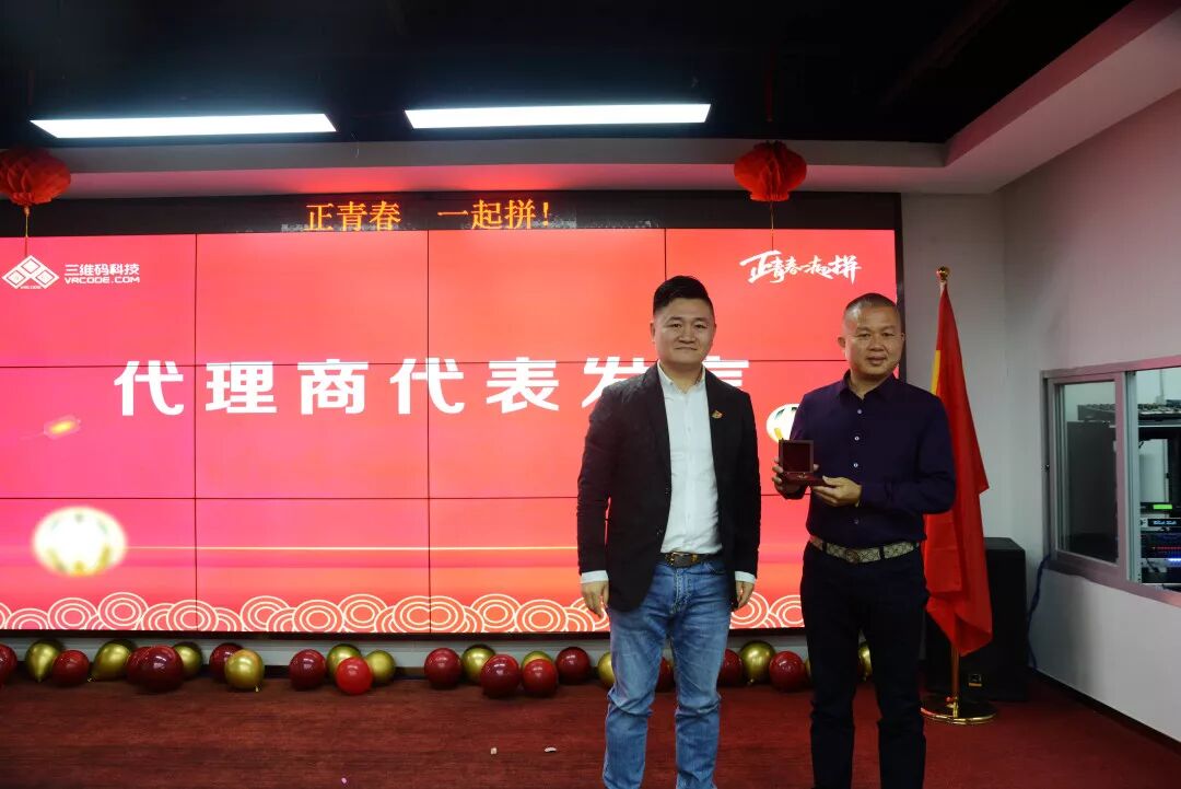 此次年终总结邀请到优秀代理商代表泉州市级代理和漳州市级代理,他们做为第一批区域代理商加入三维码大家庭,一路披荆斩棘,仍激情满怀,为此授予他们纯银荣誉胸徽及卡地亚铂金经典戒指,感谢他们一路以来的支持与相伴。