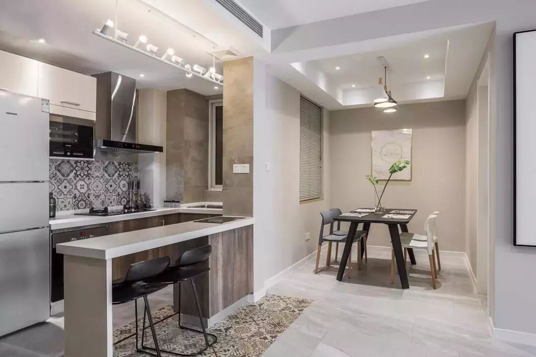 ▲ 吧台区域采用花砖铺贴,别具一格的吊灯营造气氛,让小空间变得独特别致,整体更具小资情调。