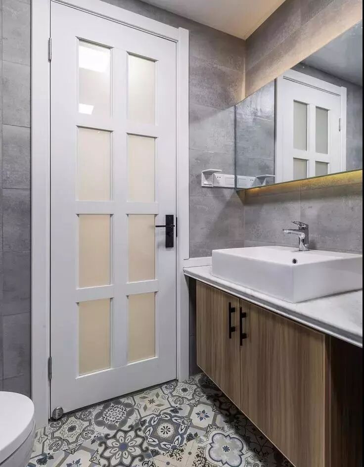 ▲ 卫生间干湿分离,干区地面铺设小花砖迎合北欧风格的小元素。