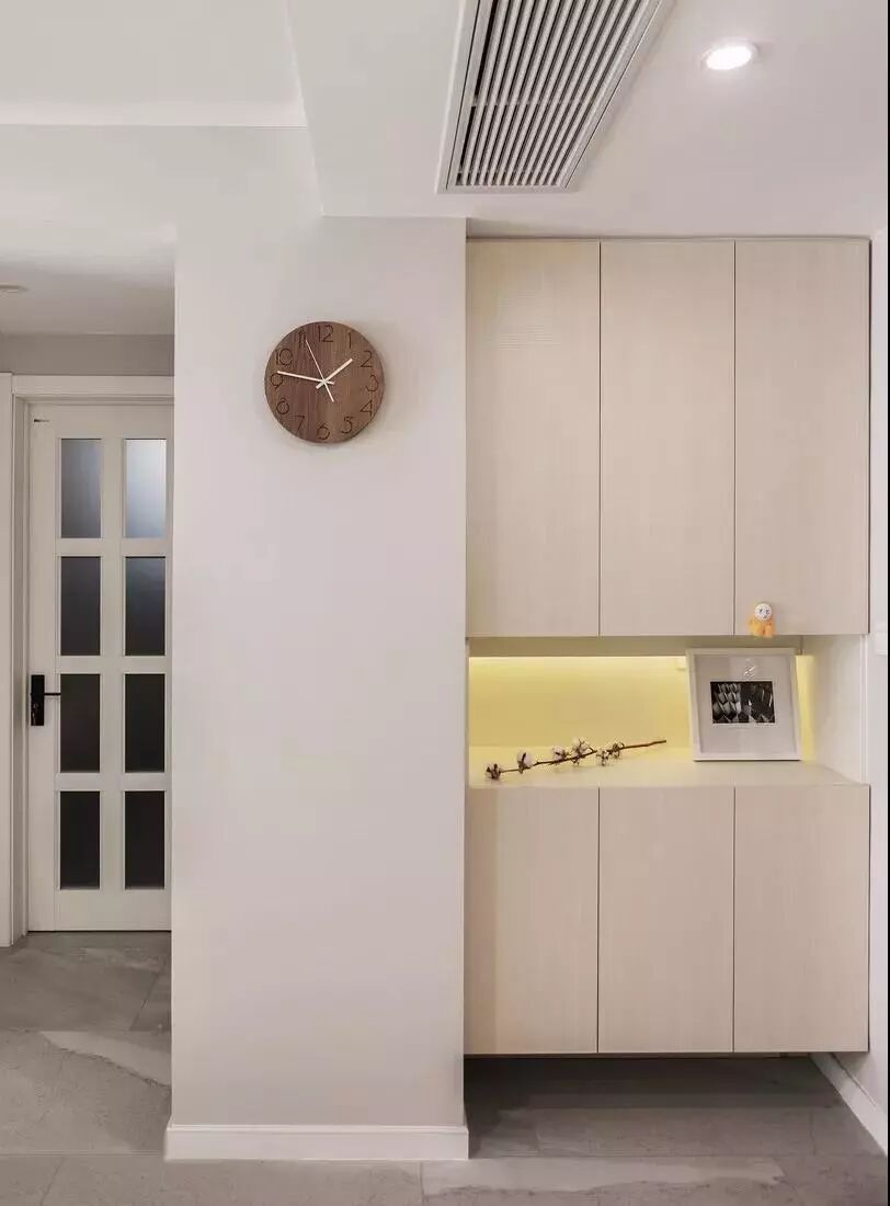 ▲ 玄关设计了一组极简的鞋柜,鞋柜中部留空可以随手放置小物,悬空的设计可以放些换穿的鞋子。