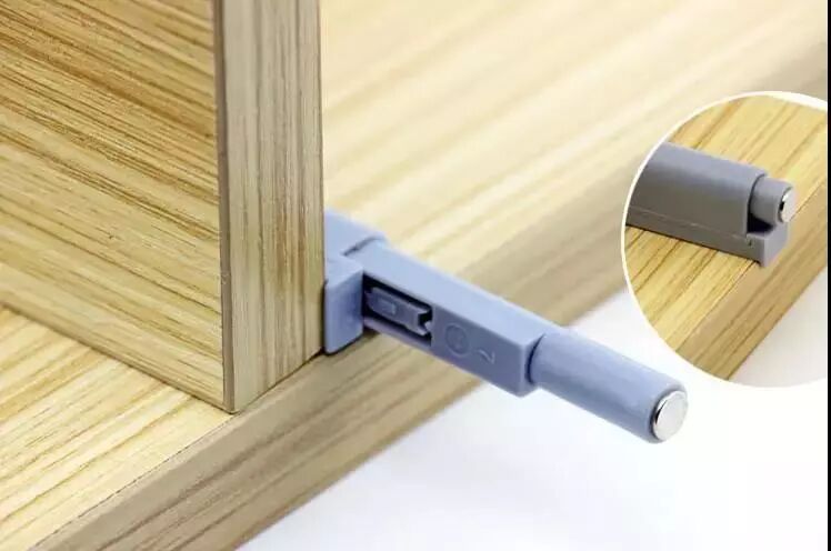 通过柜子内部安装这个配件,可以在保持柜门简洁的基础实现开关柜门的巧妙设计,不过这种配件式的设计有个弊端就是这个配件长时间使用的话容易损坏,适合一些不常用的柜子。