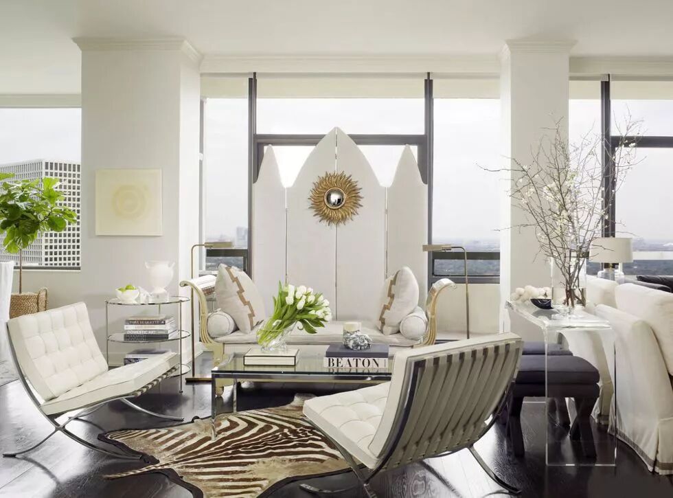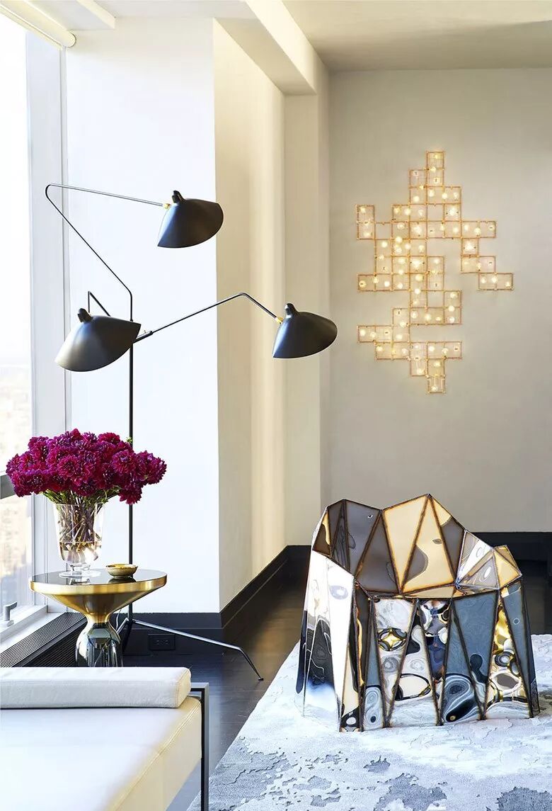 从带有瑞典风格的帝国沙发床到拥有透明质感的亚克力桌几,古典风情与现代材质的组合,让家具轮廓充盈了线条美感。纯白绵滑的触感为折叠屏风的整体造型染上柔和色彩,来自20世纪40年代的放射状镜面则充满装饰艺术的热情,白金搭配,无限的尊贵。