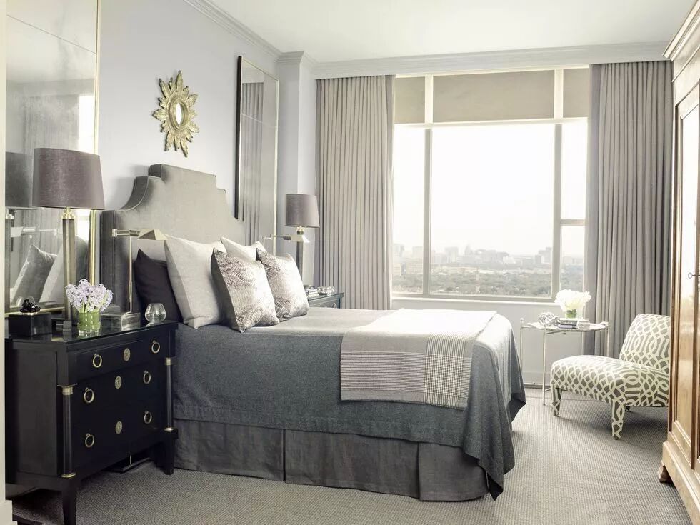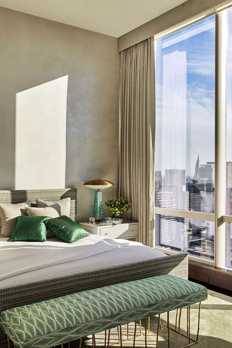 卧室里,霜灰色的墙面打造色彩的层次和细节,一点绿植点缀,无论是在会客厅还是私人场所,都能带来清新滋味,让人心情随之愉悦。