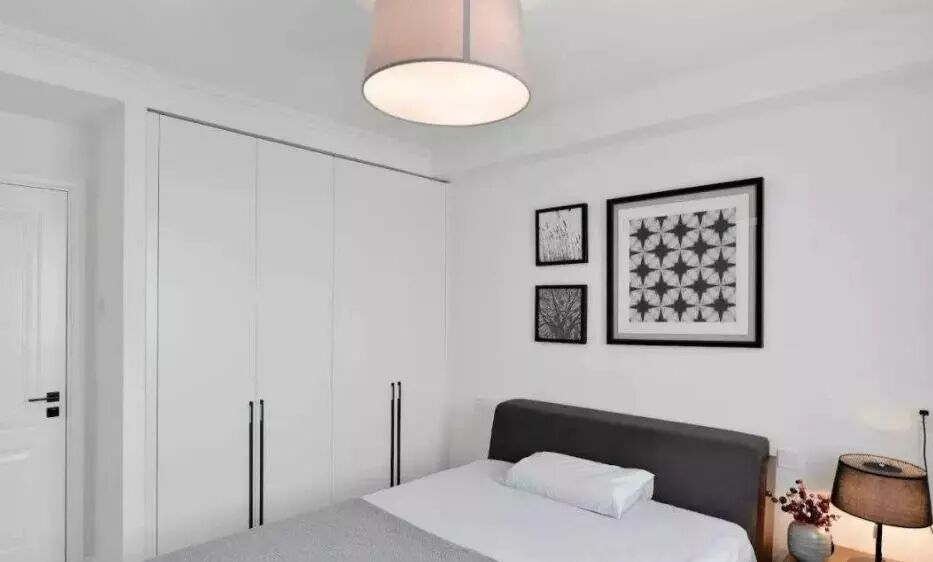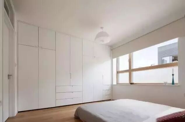 卧室里某一面墙较大的,可以把它利用起来装成一整面的衣帽间,甚至可以通过开放式的挂钩等形式,来实现自己梦寐以求的衣帽间小梦想。