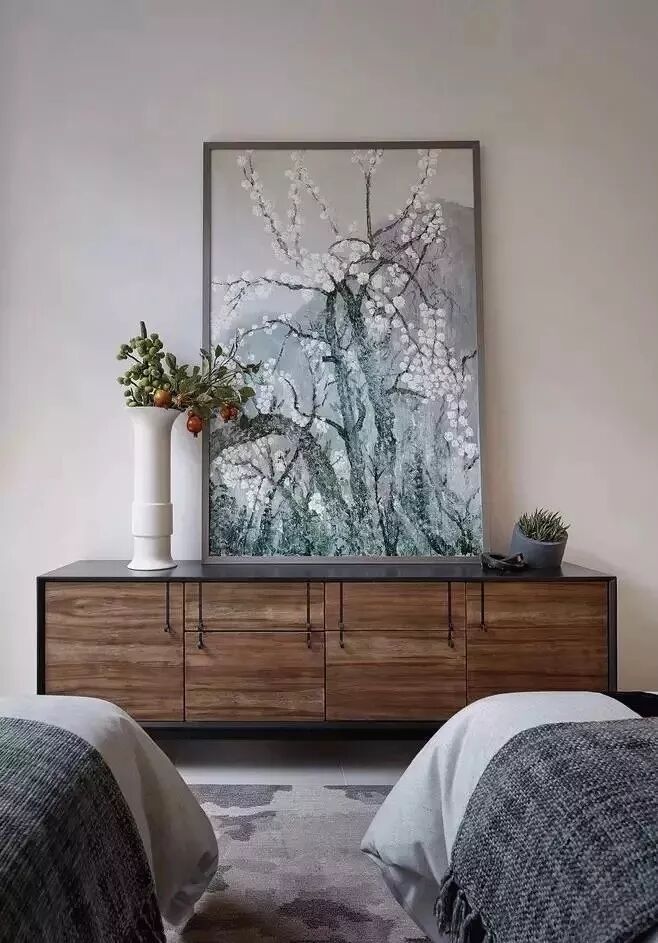 再搭配雅致的挂画、器物、禅意花瓶等,