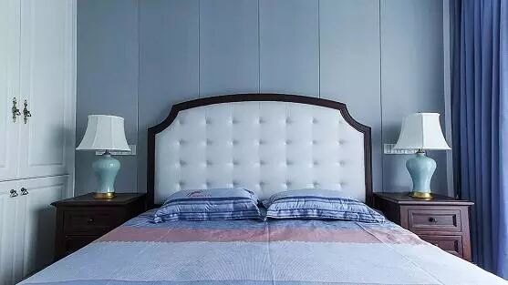 主卧整体延续了客厅的主色调,冷静又优雅的风格,营造静谧雅致的就寝环境