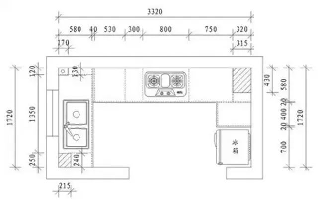根据人体工程学角度来看,橱柜地柜的尺寸高度应该控制在780mm范围内,水槽尺寸控制在470mmX880mm范围内。