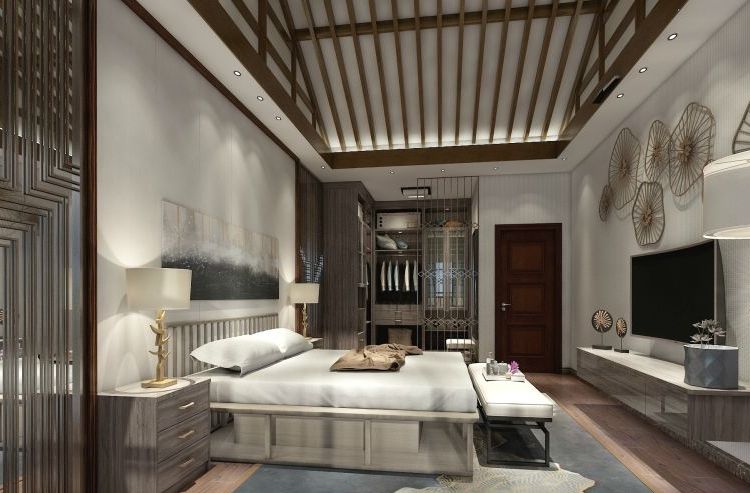 中式风格必不可少的元素,放在玄关、卧室、书房都是不错的选择。格栅隔断不会很遮光,安置在玄关处还可以起到保护隐私的作用,尤其木质屏风更有质感,与木质家具搭配为整体空间增色不少。