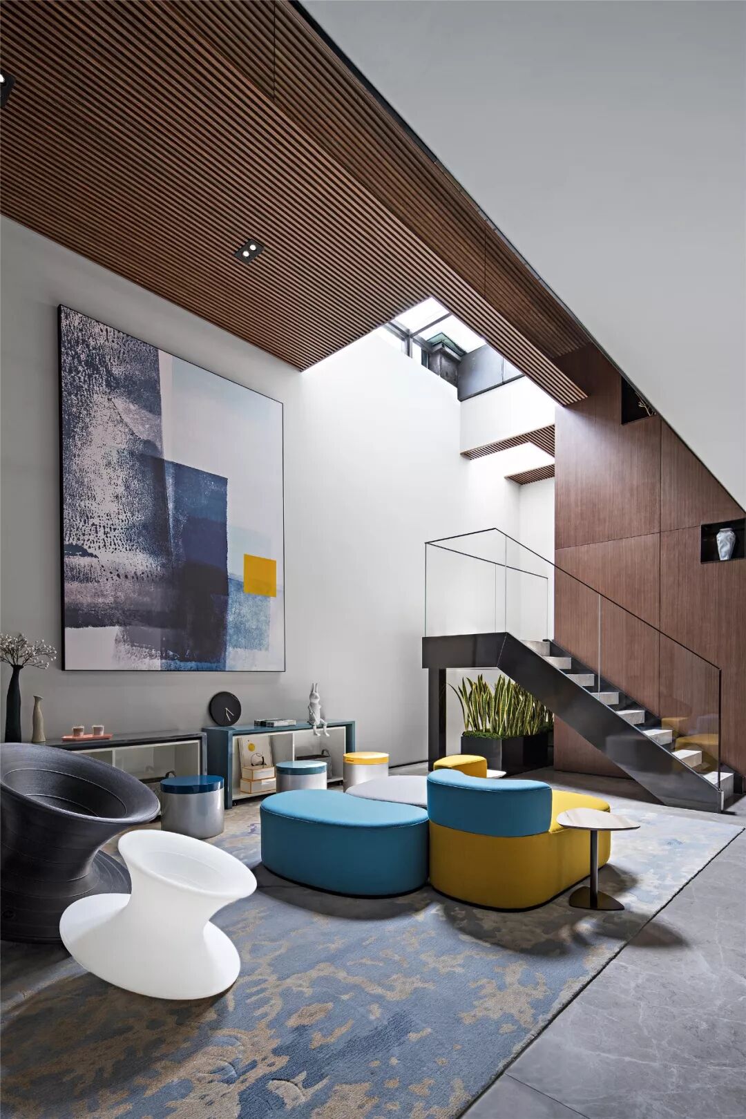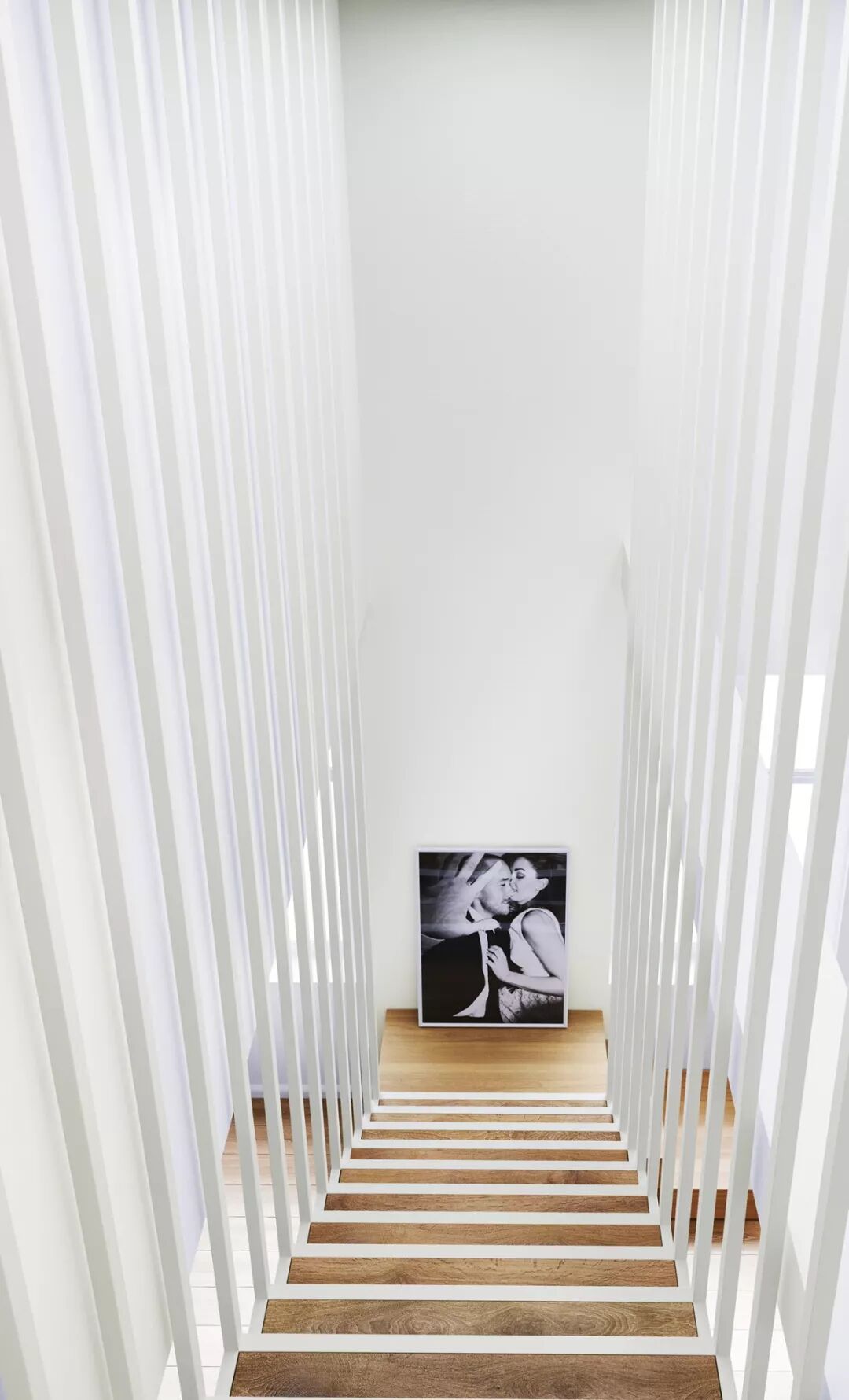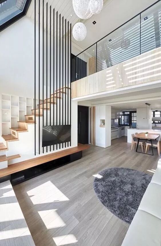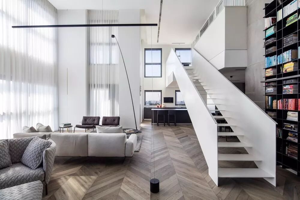 悬浮式楼梯轻巧优雅,可以将空间的错落感诠释到极致,充满线条感的衔接让空间更具艺术气息。