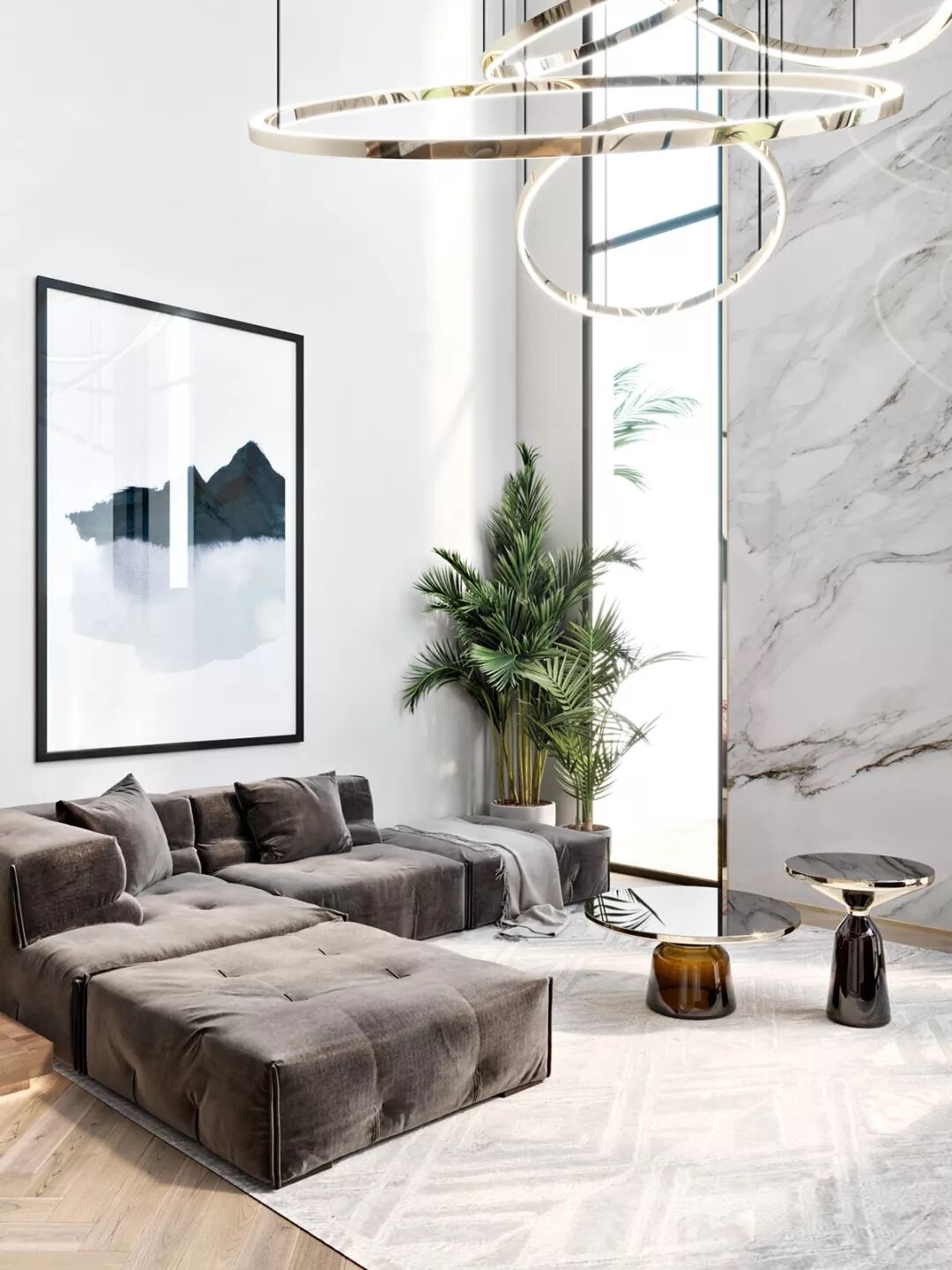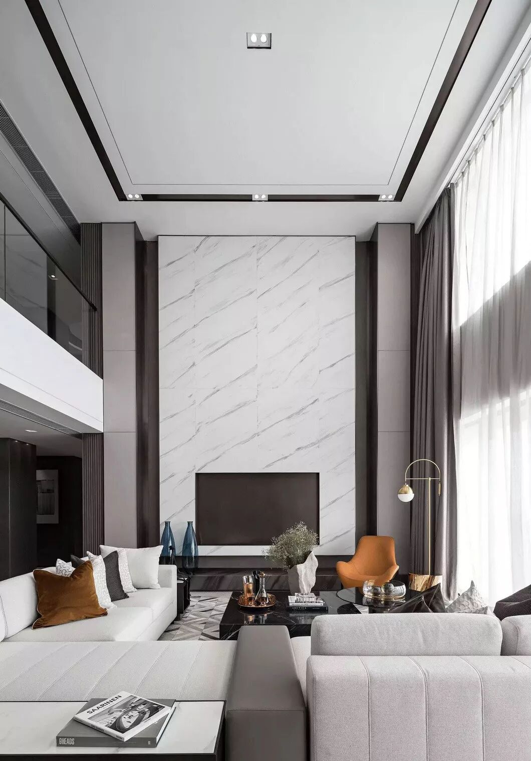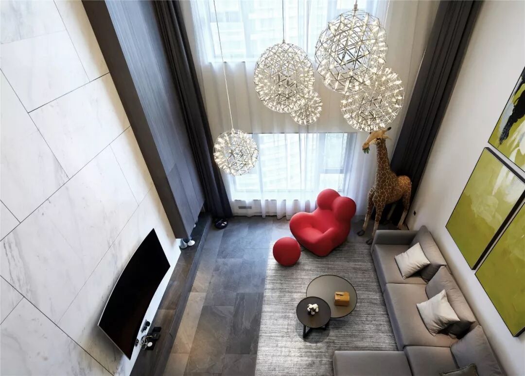 挑空客厅可以采用低矮的家具来反衬空间的高大,搭配用垂坠的窗帘来拉长视觉,一切都是那样的优雅。