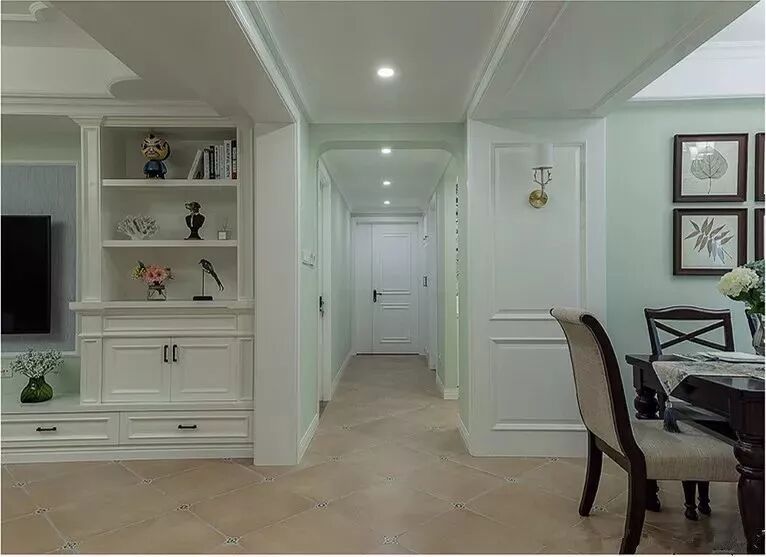 所谓地面分隔,就是在地面砖上做边线造型,这个做法通常都是综合了墙面、天花一起到的,适合一些相对较大面积的客餐厅区域。