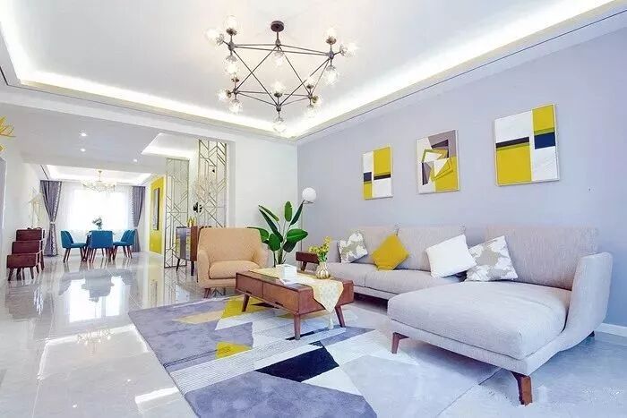 客餐厅相连,相信这是大多数户型的情况,而在拘束的空间内又不想把空间以隔断分离开来,这个时候可以如何分割客餐厅,让2个空间显得相对独立呢?