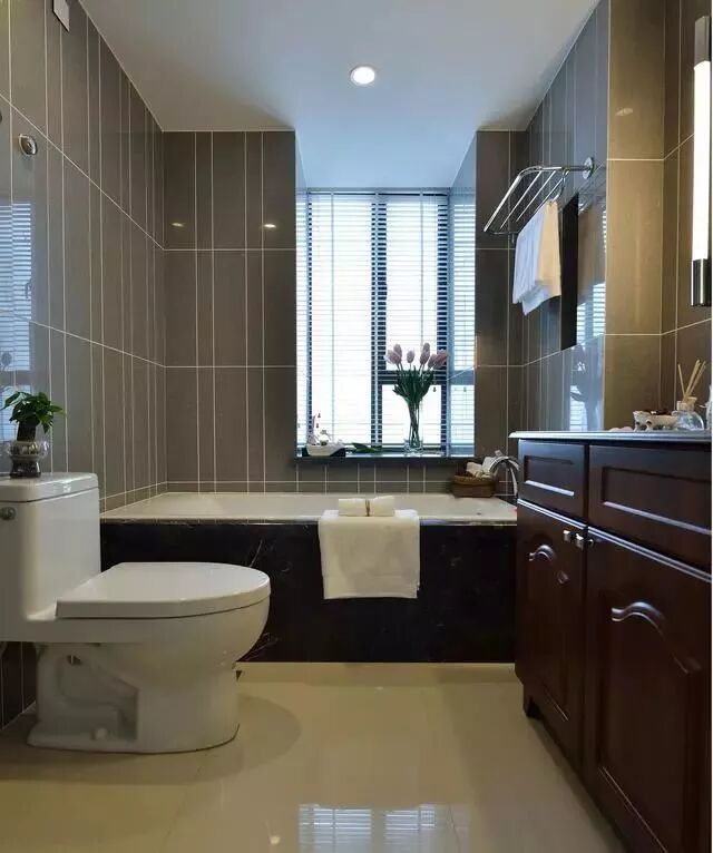 灰色防滑瓷砖搭配双人位的洗手盆,简约细腻、优雅大方。