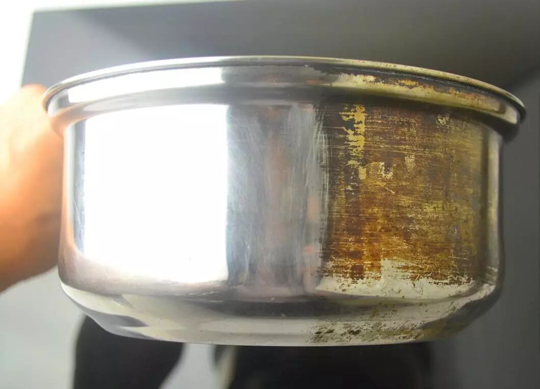 ① 糊掉的锅底不要用钢丝球刷,倒入很多洗涤剂和一些水,再盖上一张厨房用纸,静置一小时后糊掉的部分就可以轻松洗掉了。