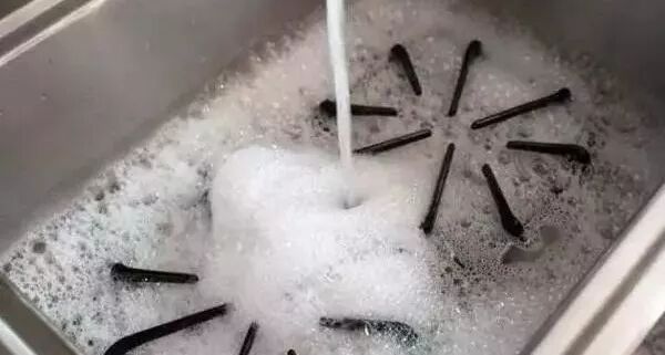 ② 水槽的四周弯角和下水处,可以用专门的小刷子沾上细盐、肥皂水、清洁剂等擦拭,下水处的水盖最好用温肥皂水浸泡20-30分钟