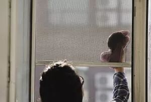 纱窗除了拆下来用水清洗外,还可以将打湿的废报纸粘贴在纱窗反面,藉此来吸收灰尘清洁纱窗。有油渍的话用海绵沾洗衣粉水来清洗。