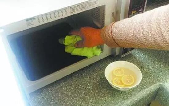 ② 微波炉:一个大碗里装满水,再装上点新鲜的切开的柠檬片,将其放入微波炉内用高火加热四五分钟,这样水蒸气就会沾染微波炉内部,再用这碗柠檬水去清洗微波炉内部。