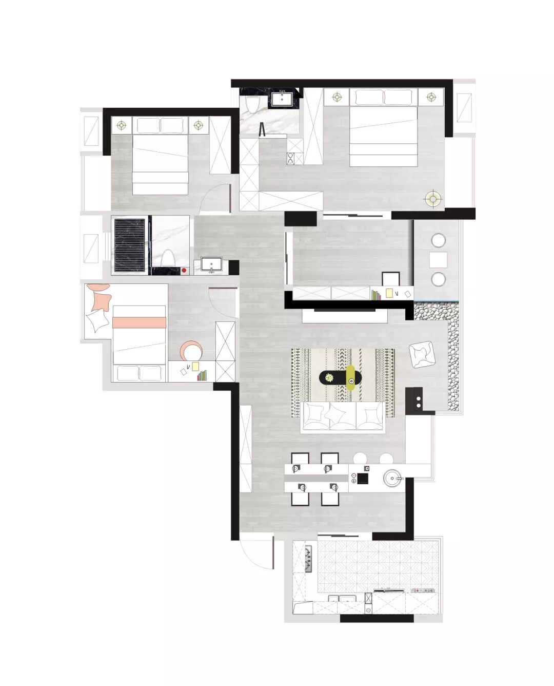 3.主卧外过道曲折狭长,透光性差。进入主卧需通过冗余的路线