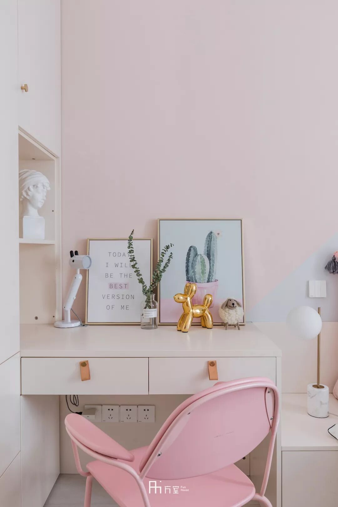 有一种远方,是爸爸的童话,无远弗届。中规中矩,又光怪陆离。此套案例为二手房改造,放弃原有布局,改头换面旨在满足业主一心给女儿打造童话般的空间。我们保留业主喜爱的蓝色及现代风格的沉稳格调,融合跳跃明亮的粉色儿童房,冲突却不跳脱。粉色盥洗池采用弧形面包砖,似水蜜桃一般,青春且怪诞。