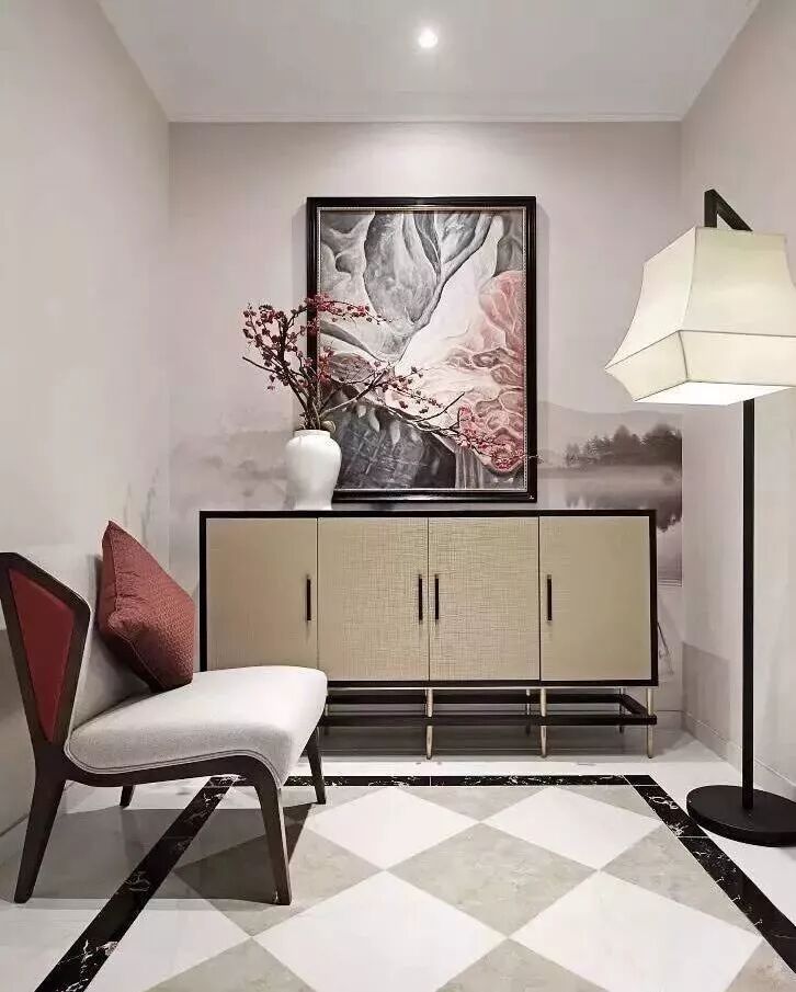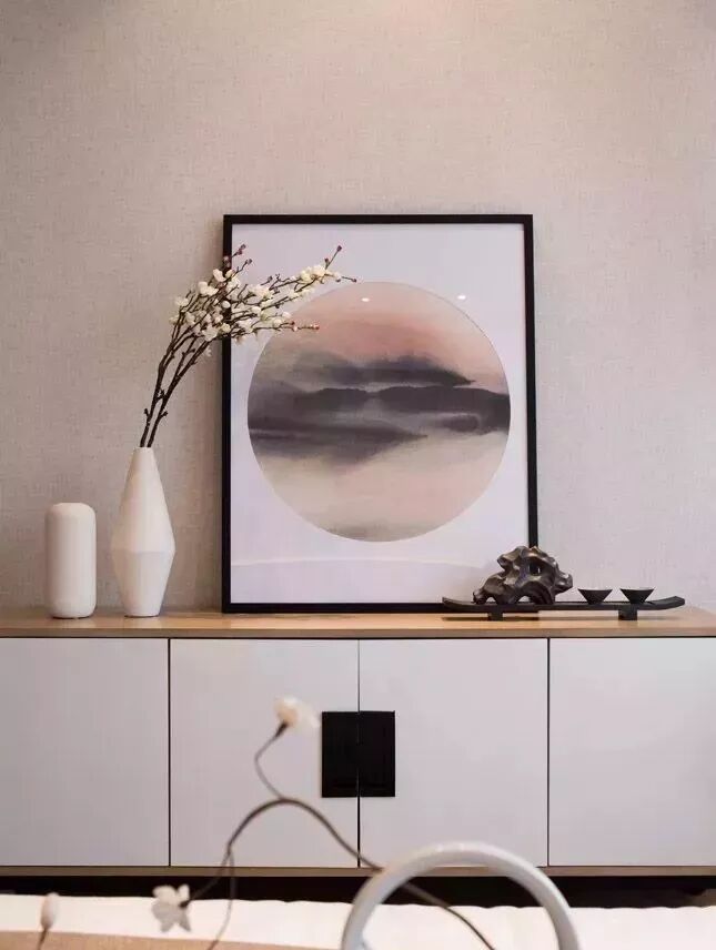再搭配雅致的挂画、器物、禅意花瓶等,
