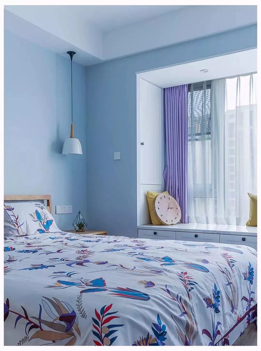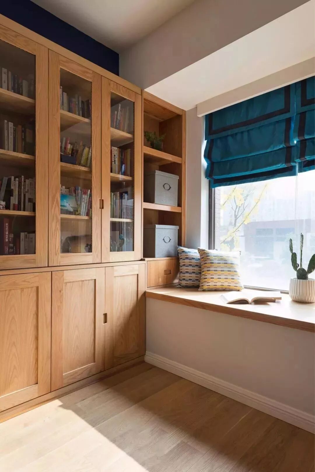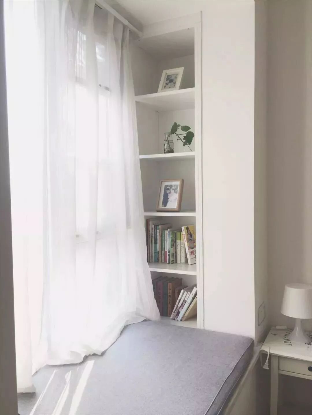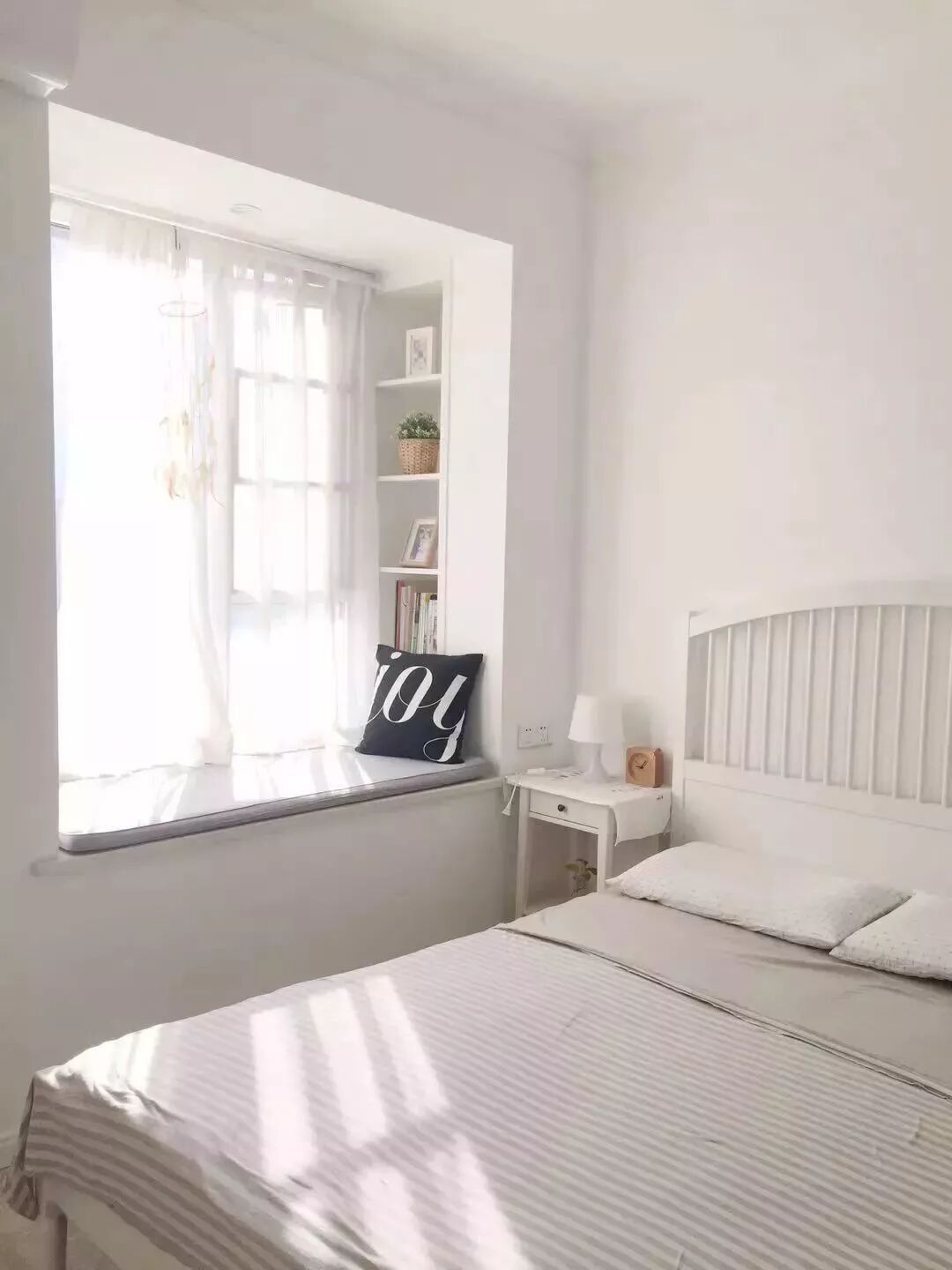 对于面积较小的房子,利用好每一片面积是小户型设计的秘籍,比如说窗户两侧的墙面空间,往往都是被留空闲置,这对于小户型来说未免显得太可惜了,其实只要在这个基础加一个飘窗,并在两侧空间做柜子的,这种隐藏式的收纳方式,既能保持整洁的视觉效果,而且也是非常的别致有趣!