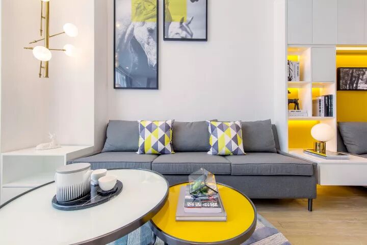 个性鲜明的黄色系,是客厅给人的第一个印象,虽然元素不多,但一眼制服。简明的布置和流畅线条,干净利落,给人很爽朗又个性的视觉享受。