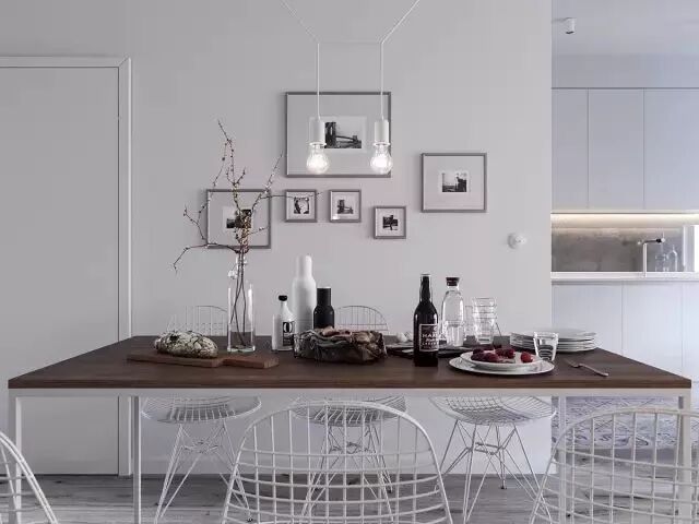 ▲餐厅,简约的餐桌椅配有爱迪生风格灯泡的设计充满了时尚的艺术气质。