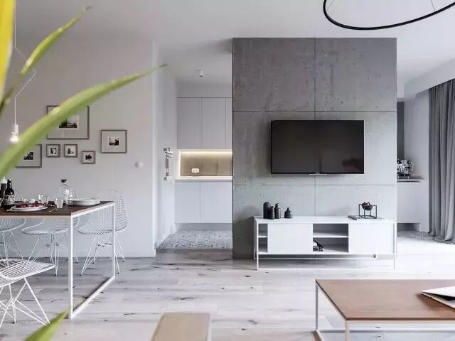 ▲ 这个巧妙紧凑的公寓采取明亮的半开放式布局,设有一间单人卧室,并在自己的私人区域设有高效的书房。装饰主题落在工业极简主义与现代别致之间,融合了自然和城市风格的材料,在两个审美影响的中心达到了舒适的中间位置。
