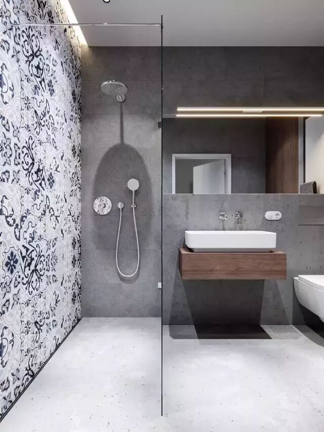 ▲除了淋浴墙,浴室的其余部分还没有明显的装饰,时尚的材料能够使主题得到更大的升华。