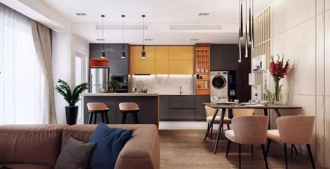 先来说下开放式厨房的注意事项: ①通气问题 多数地方的燃气公司都是不允许开放式厨房的,如果你做成开放式的厨房,燃气公司可能不会给你通气。 ②油烟问题 如果家里经常爆炒的话,那么再好的油烟机,也挡不住油烟的侵袭。 ③饮食习惯 如果不经常在家做饭,或则喜欢清淡、甚至是西餐,那么开放式厨房的生活还是可以想象的。 ④杂乱与收纳 厨房是个容易杂乱的空间,做成开放式的话,意味着你需要对收纳、清洁都有着明确的规划,否则会把杂乱的视觉带入到客餐厅。