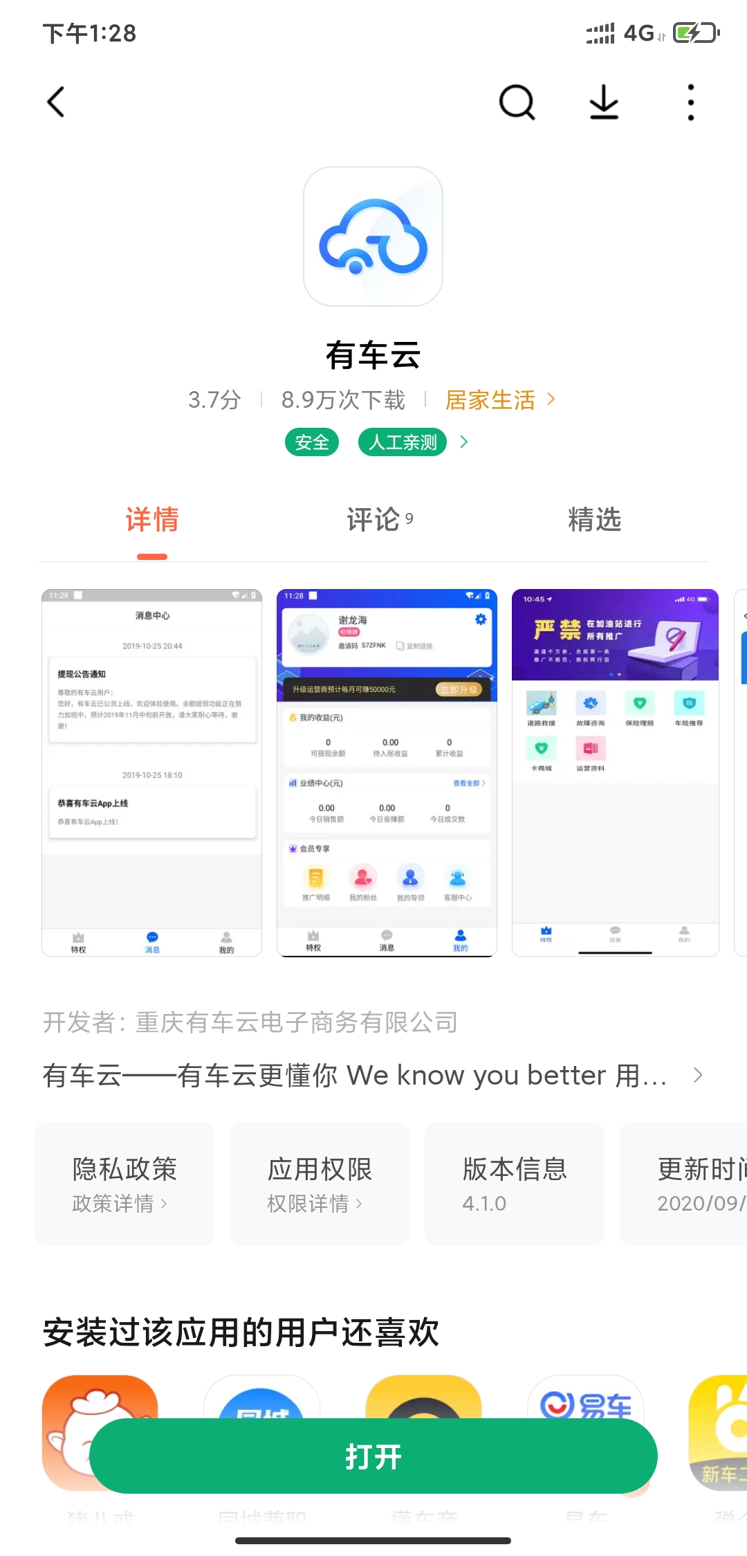 入驻成功(打开“有车云”APP-我的-门店招募 即可查看、修改门店详情)