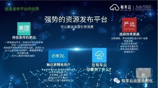 以上的数字大家可以自己看,这个蛋糕是大是小,不用我说,在传统领域,这些特殊行业的红利,只能掌握在少数人的手里,但今天有车云通过自身的技术,资源,支付等优势,聚合了这些资源,并把它做成了平台型的产品,让每一个人都可以低门槛参与。