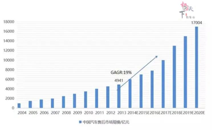 有关数据显示,2019年中国汽车后市场规模已达13327亿元,甚至预计2020年中国汽车后市场规模将上升至17004亿元。