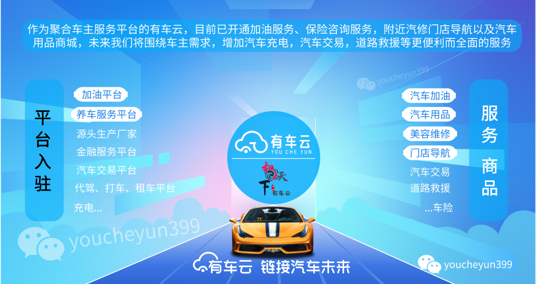 有车云车主权益卡,是以车主社群为核心的全品类圈层社交电商平台, 汇集了加油优惠、道路救援等全品类综合用车优惠服务,让广大车主享受实惠的车主福利。洗车、维修、保养、买卖车、购物、金融等多种服务将陆续上线!