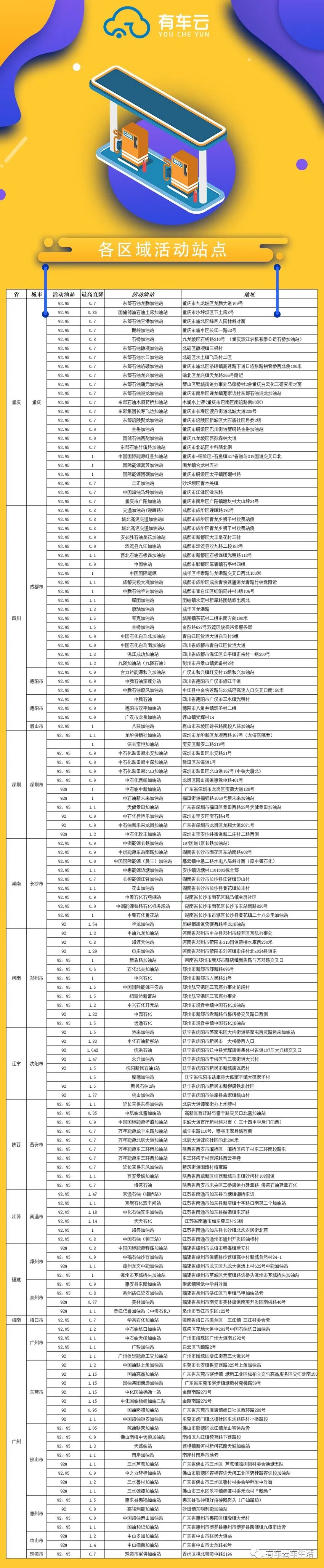 特别说明:文章中优惠汽油以列表中为准。