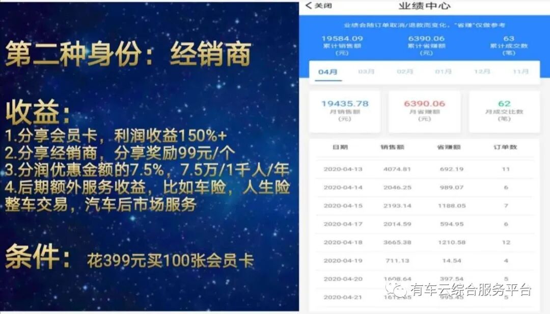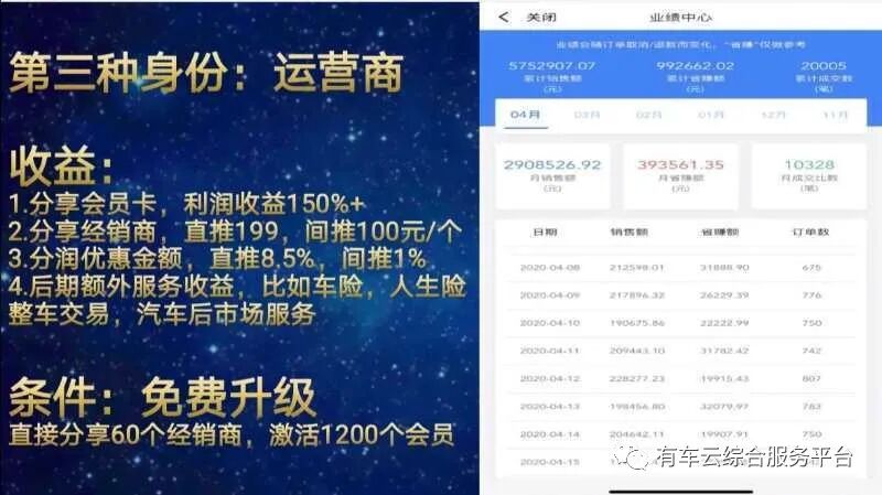 跟有车云合作怎么分润?任何平台的推广,合规是第一前提,有车云的模式是简单的传统批发零售加上这个互联网两级分销,具体合作者有三种身份。