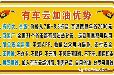 加油折扣从8.8折开始,有些地方更优惠在某些地方,折扣不多这是一个动态的过程购买卡每张2元人民币,100张-200元,立即推荐经销商399元,您可以获得199元的佣金,如果您的间接团队有399元的经销商,您可以获得人民币100元的佣金,如果经销商没有晋升为经营者,您不再向团队支付股息 该运算符所属的。