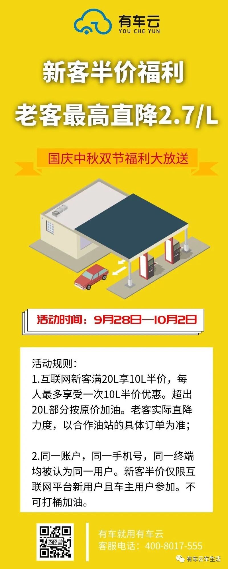 中秋国庆双节加油福利大放送!新客半价老客直降,为期5天!