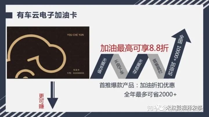 接下来我给大家做一个简单的分享,帮助大家更深一步的了解有车云这个平台。有车云的产品结构其实很简单,第一个爆款产品就是“车云卡”,使用“车云卡”加油可以享受折扣优惠!“车云卡”目前在全国17000+加油服务网点均可以使用,不用充值,不需要预存,也不用下载APP,更不需要绑定行驶证,一年轻轻松松节省上千元的油钱!真正做到了,简单好用!只要激活成为会员,立即可以显示附近可用加油站的折扣优惠详情,“车云卡”可送可卖!当你每送出去或者卖出去一个“车云卡”会员资格,它都将会成为你财富的收益渠道,因为加油是刚需并且高频次的能源消费品,只要是你的会员加油消费就会为你带来源源不断的收益,收藏转发后可找小编获取一张车云卡。