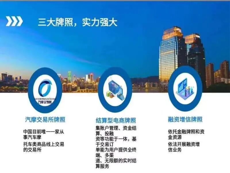 从平台背景、实力来看,它的发起公司本身就是专业做汽摩行业40多年的专家宗申集团。它背靠2家上市公司、银行,拥有全国唯一的汽摩交易结算牌照、金融全牌照,国外多个研究所,遥遥领先90%以上的同行。