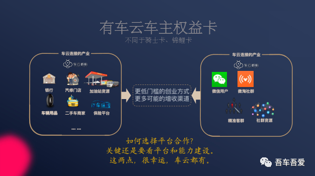 2.后期有车云会逐步推出以折扣价格购买保险,折扣价格购买新车,折扣价格享受保养等服务。公司谈下大的折扣,都会给自己留一点作为利润,其他的优惠都分给各级别的经销商。